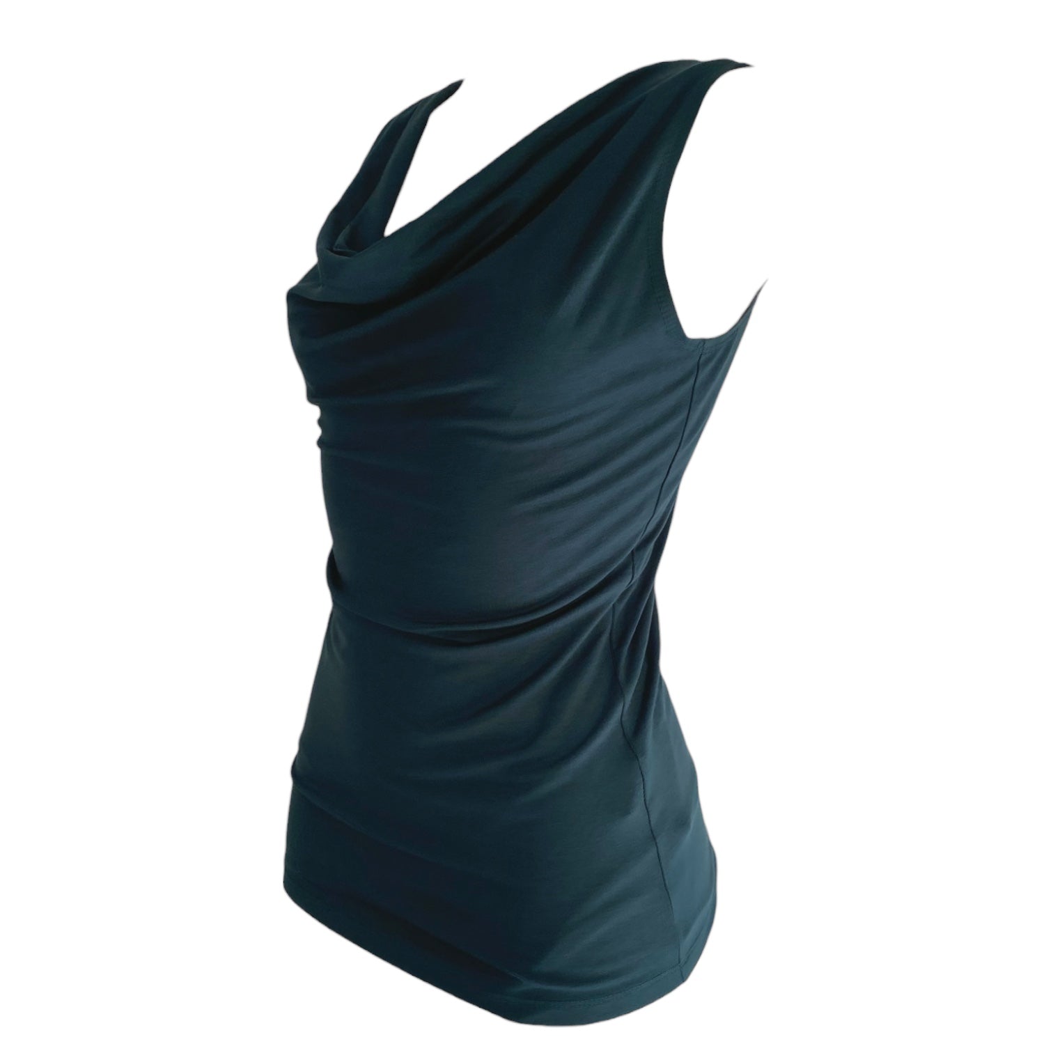 The deep midnight-black jersey fabric falls into a stunningly beautiful waterfall collar , and the back neckline is equally eye-catching. In short: Victoria will instantly become a favorite top for any occasion, as it looks just as fantastic on the dance floor as it does under a jacket at formal events.