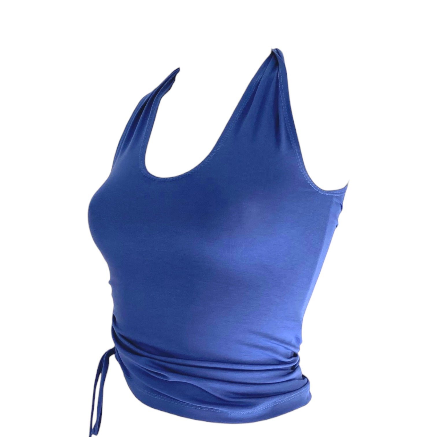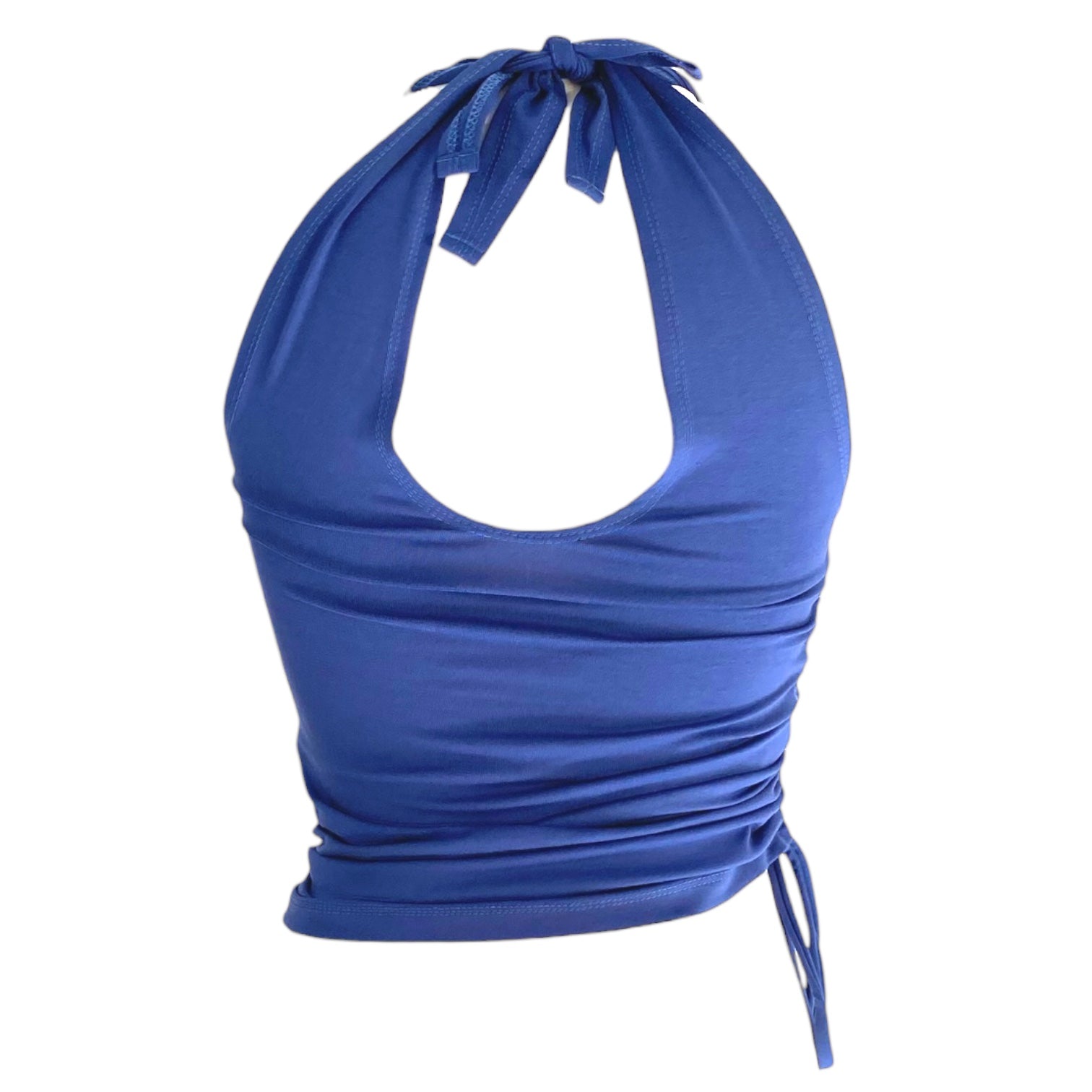 The straps are open at the top and can be tied with a knot or bow at the shoulder, back, and front. The tying alone offers at least four different ways to wear it. Add to that the fact that the gathered section can also be worn on four different sides, and it becomes clear why this versatile top is a favorite for long summer nights!