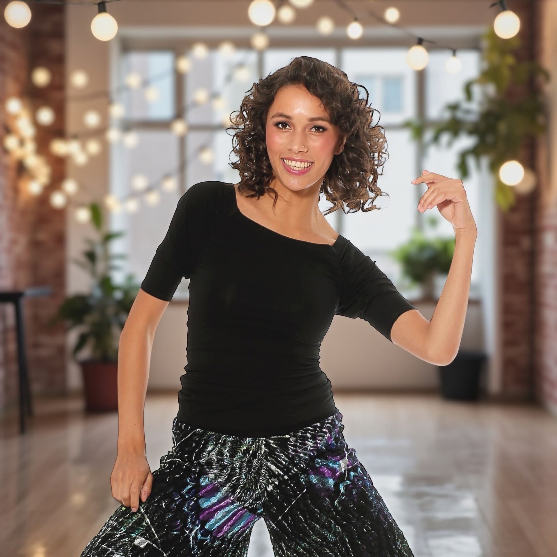 Die Raglanärmel liegen am Arm schmal an und bieten unter den Achseln eine moderne Weite. Der Vorteil – absolute Bewegungsfreiheit beim Tanz – liegt auf der Hand.