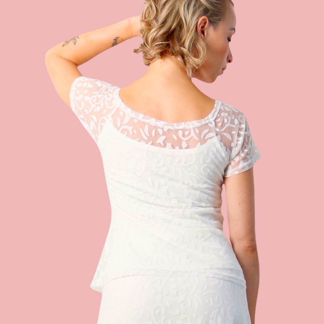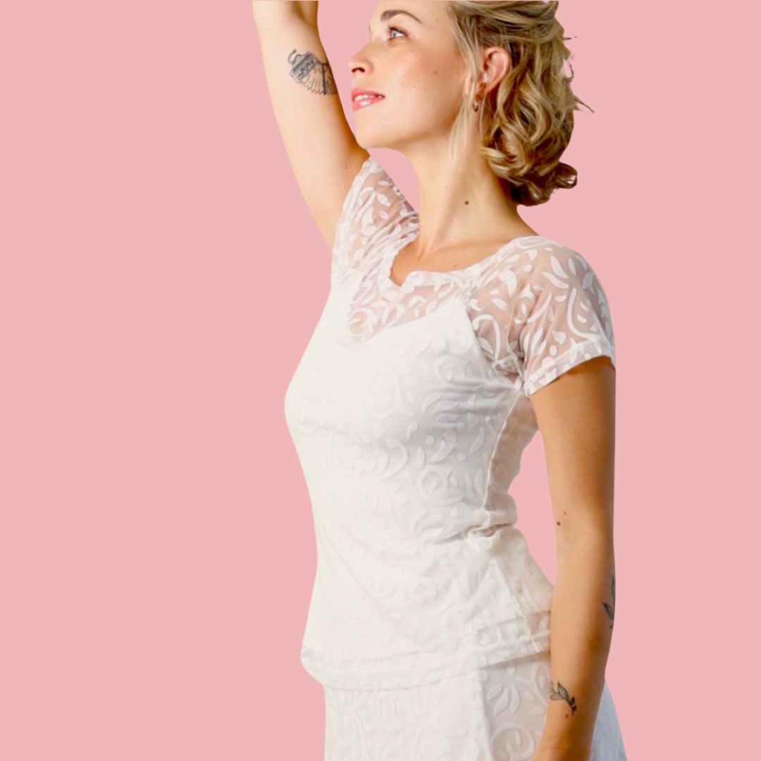 Mit diesem zauberhaften Shirt in Cremeweiß wird jeder Tanzabend zu etwas Besonderem!