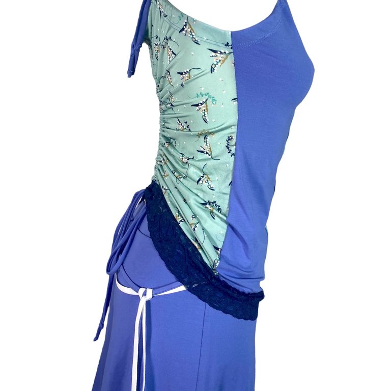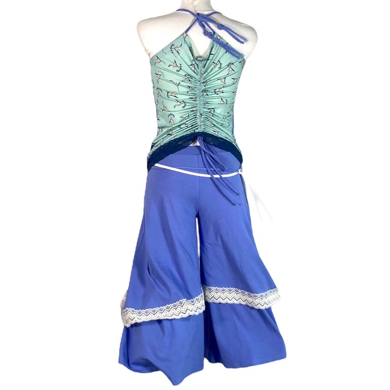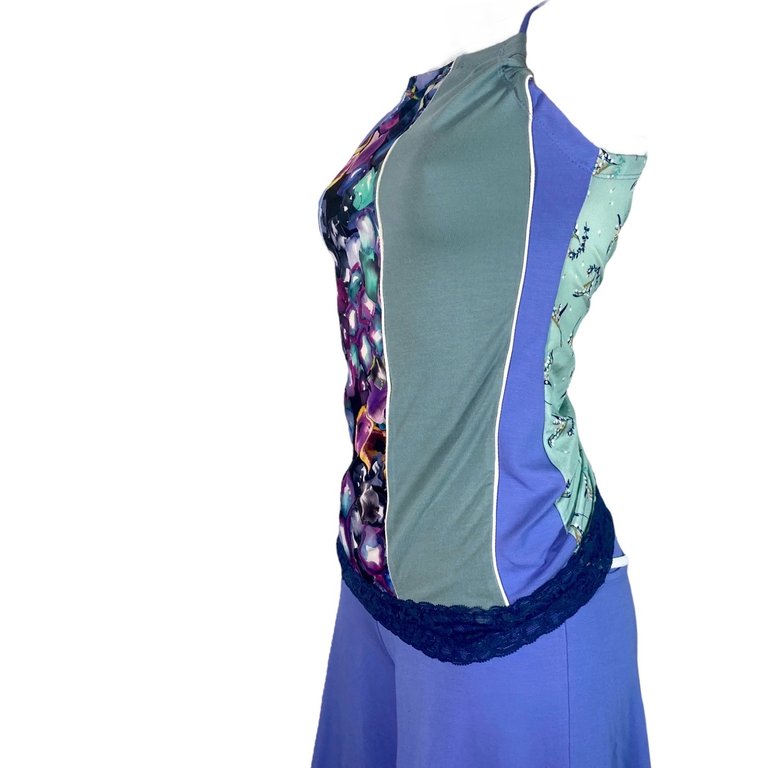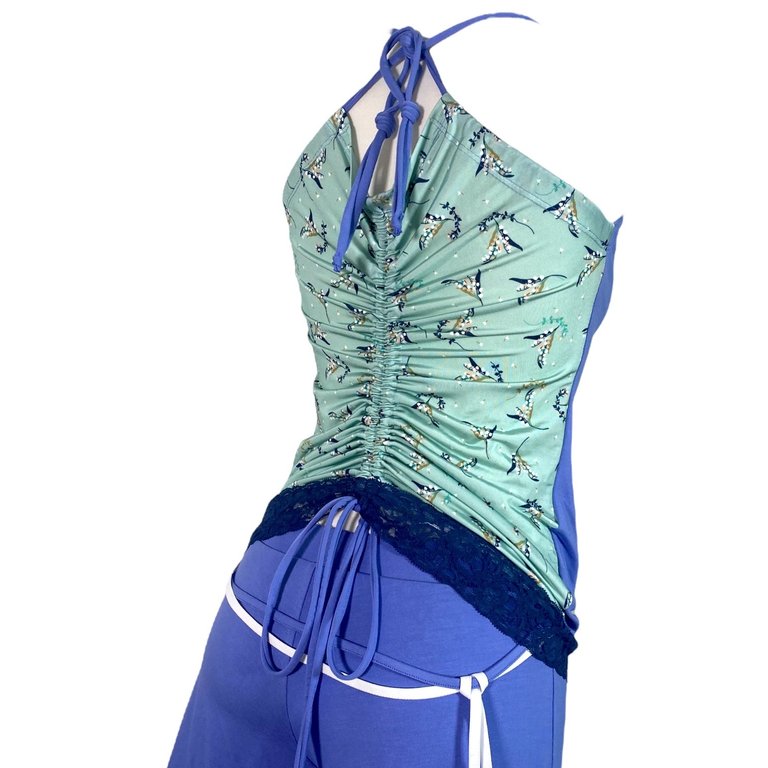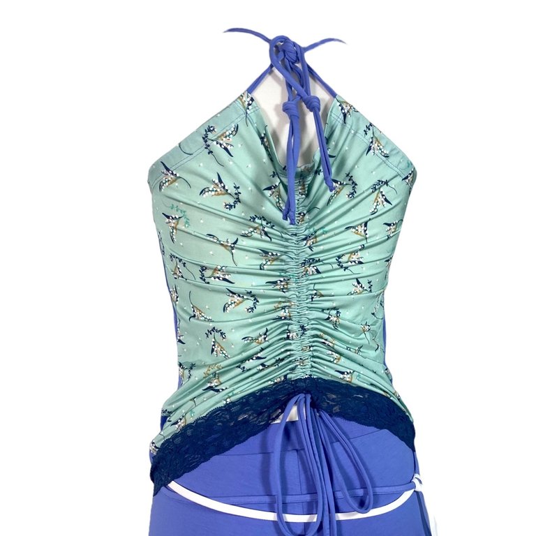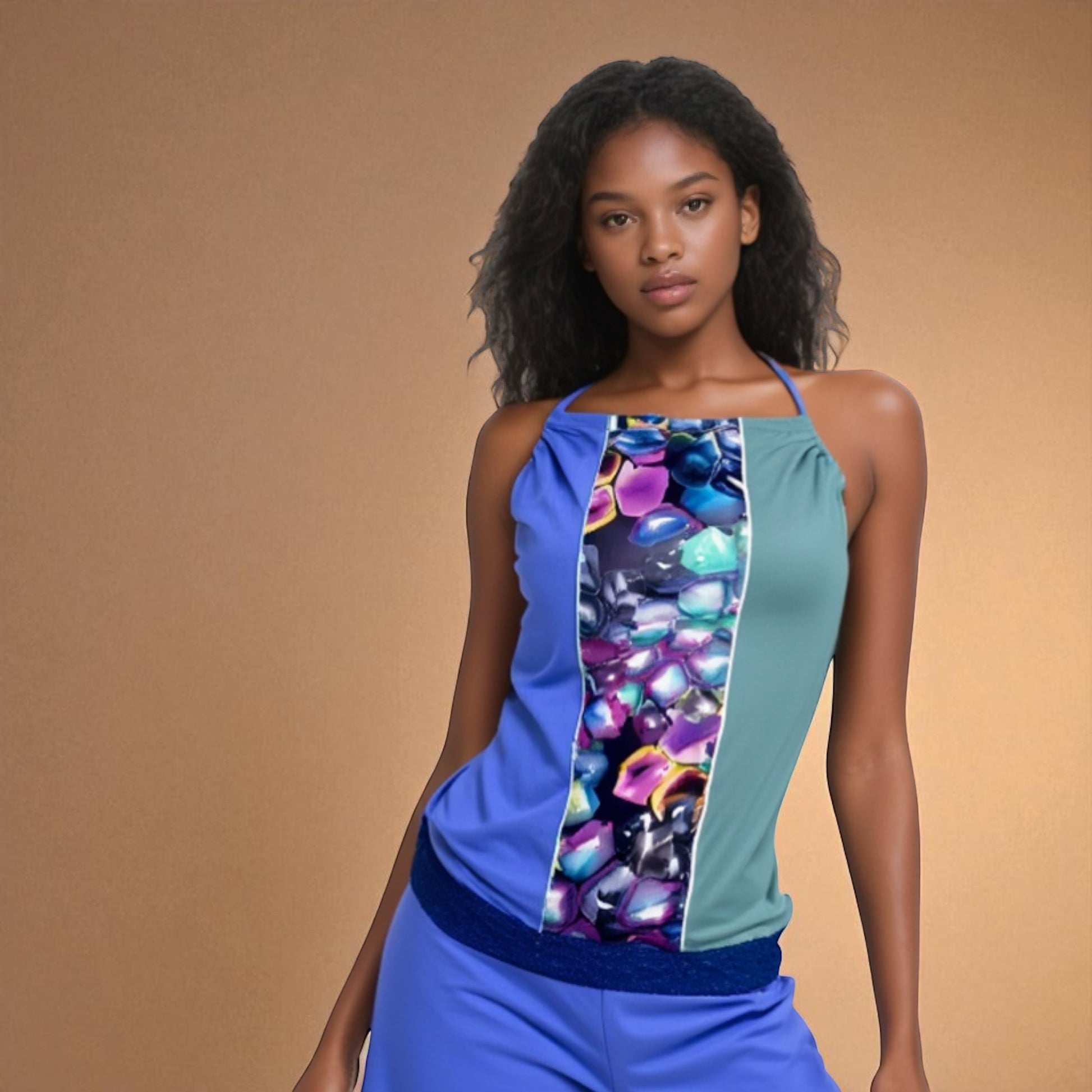Ein vielseitiges Top, das auf verschiedene Arten immer neu gebunden und geknotet werden kann. Perfekt kombinierbar mit Röcken und Hosen – ob im Alltag oder auf dem Tanzparkett.