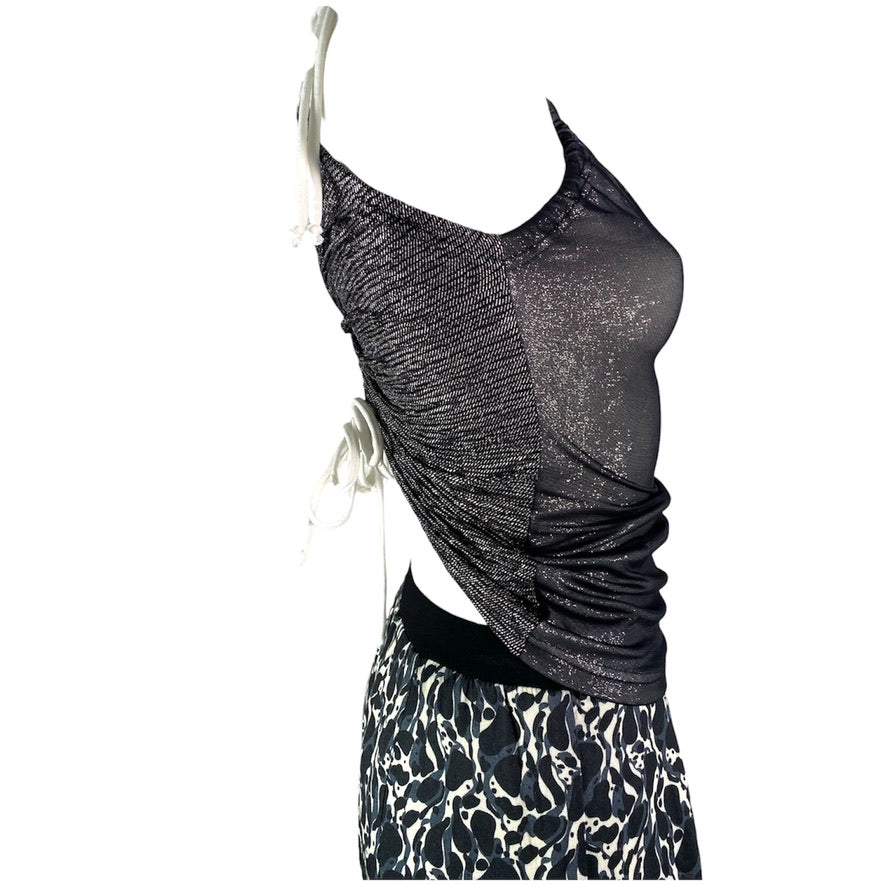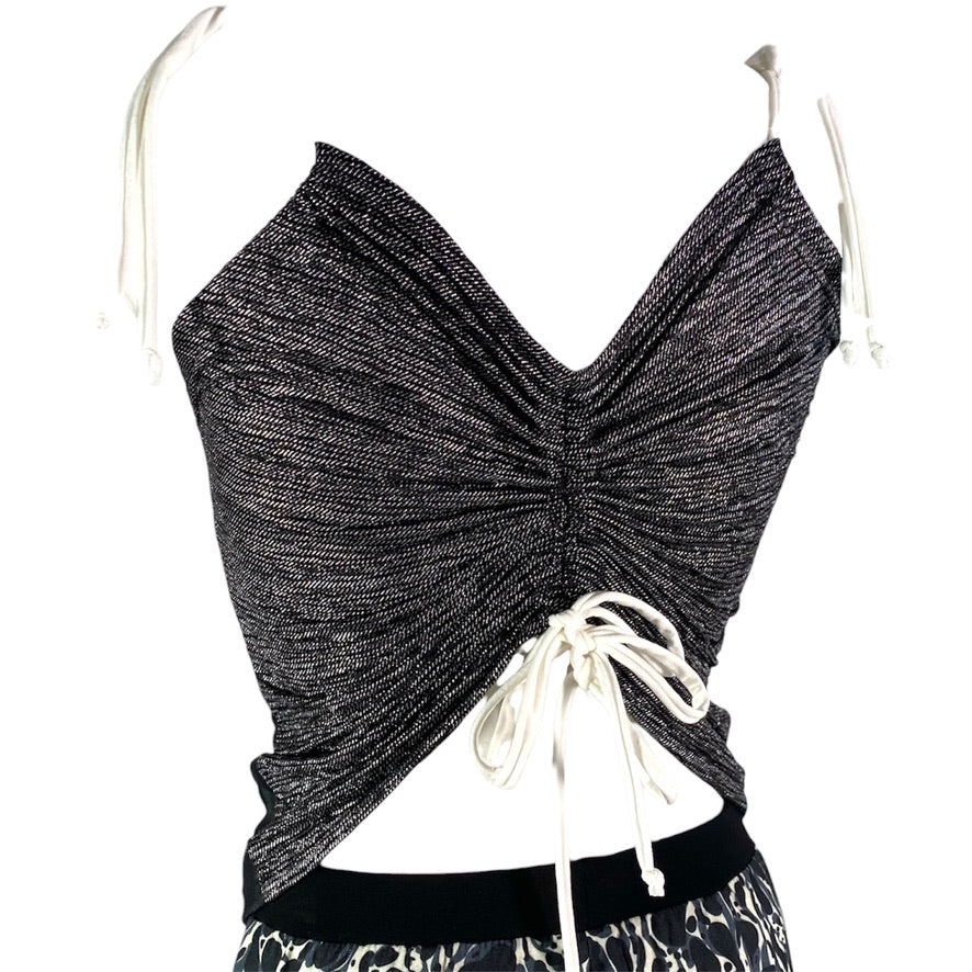 Ein vielseitiges Top, das auf verschiedene Arten immer neu gebunden und geknotet werden kann. Perfekt kombinierbar mit Röcken und Hosen – ob im Alltag oder auf dem Tanzparkett.